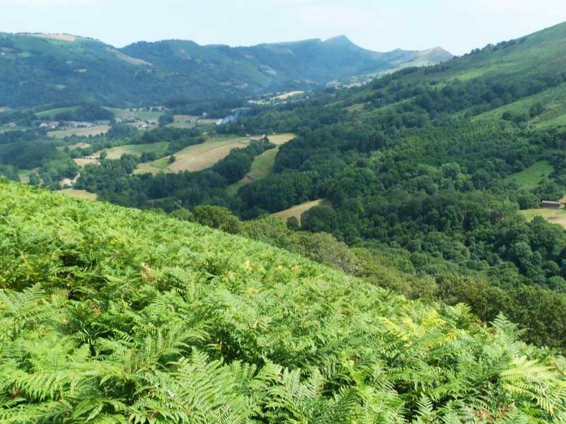 Volvemos a Gorostapolo y subimos hacia la izquierda por la ladera de la montaña, hasta llegar a un cruce de caminos que indica la dirección hacia Arizkun. Pasamos junto a una cima sobre la que se encuentra una caseta en ruinas a la derecha del sendero.