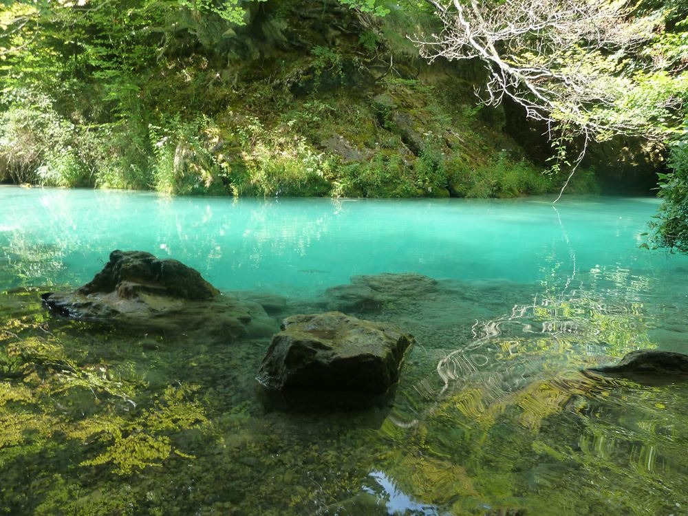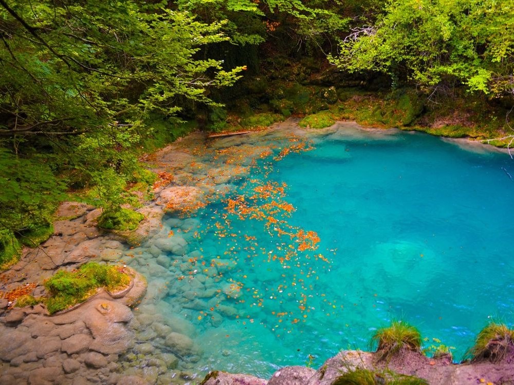 Nos dirigimos al nacedero del río Urederra que significa aguas hermosas, esta es una salida de acuífero de origen kárstico en el Parque Natural de Urbasa. Para acceder a este debemos llegar hasta el pueblo de Baquedano, es importante reservar con anterioridad porque es un lugar muy visitado y las autoridades tratan de limitar el aforo para conservar este increíble espacio natural en las mejores condiciones posibles.