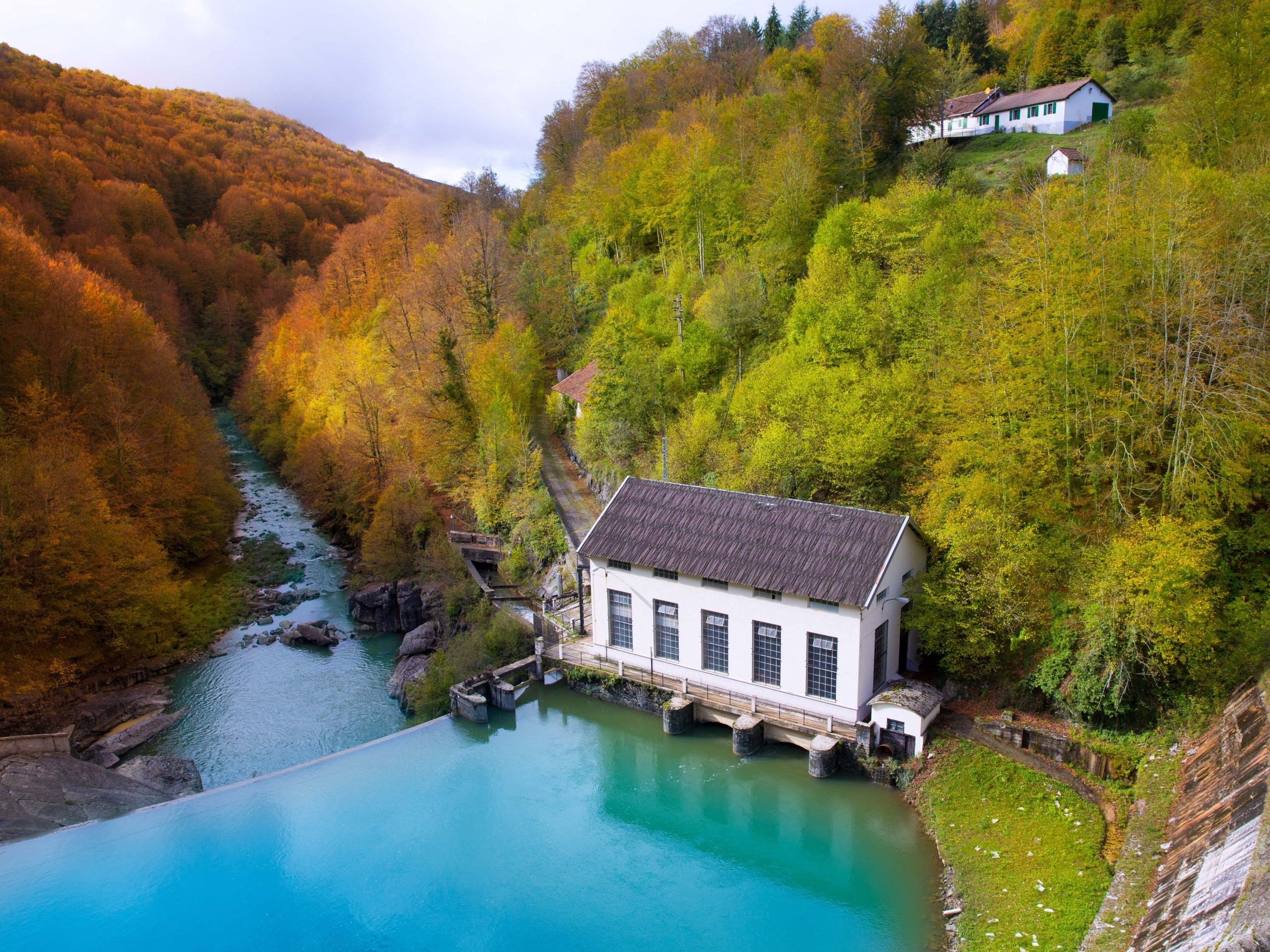 Tras recorrer 7,3 kilómetros encontramos un primer puente, las vistas son muy bonitas. Unos 600 metros más adelante encontramos la casa forestal del pantano de Irabia. Es un buen lugar para hacer una pausa, hacer fotos y reponer hidratación y energía.