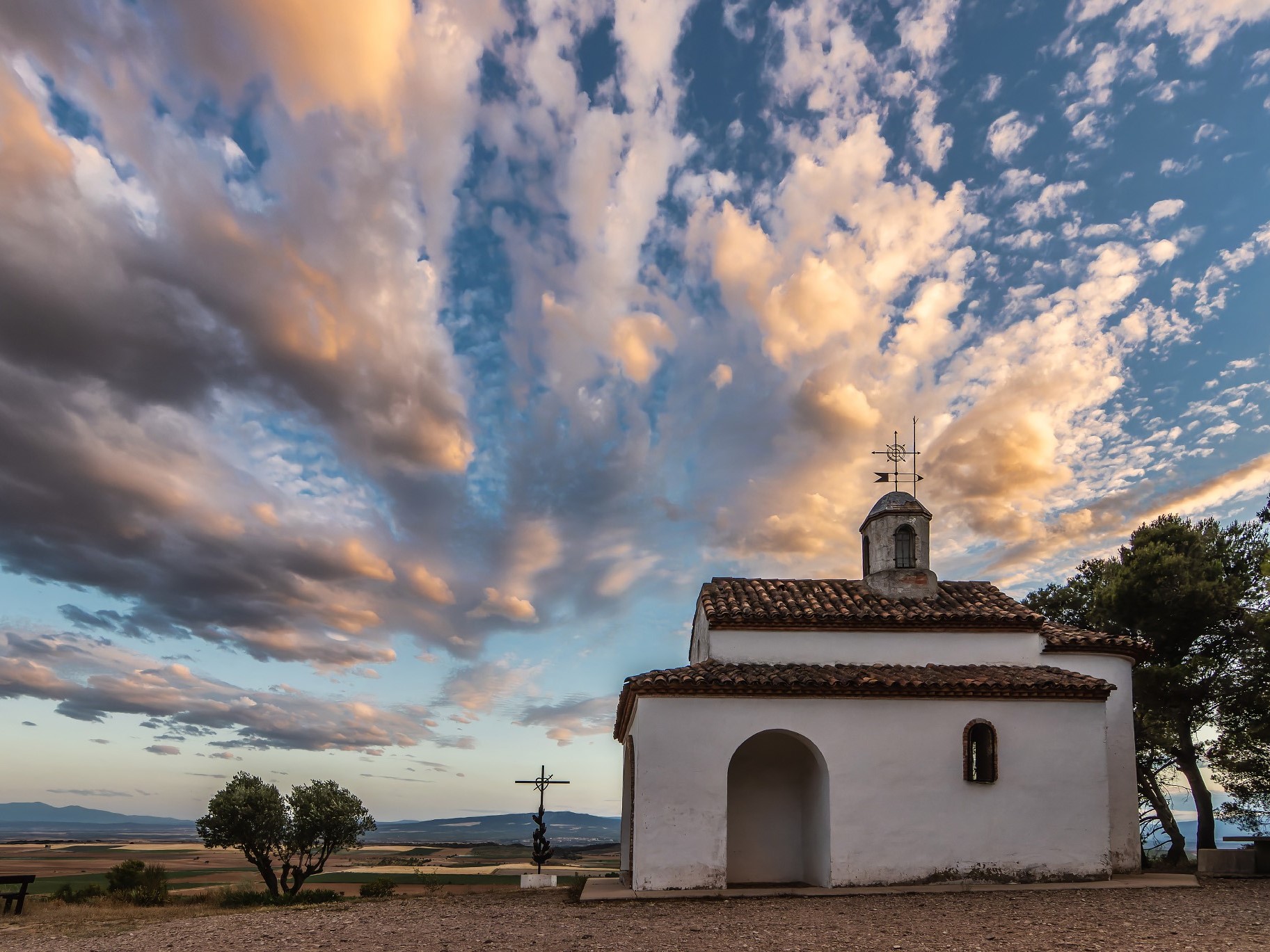 Arrancas en el área de descanso de la carretera Funes-Azagra, desde donde tomás un carretil asfaltado que sube tranquilamente hacia la Ermita del Portegado y la Cruz del Gurugú, situada en lo alto de los Olivos. Desde ahí, la senda baja por pista y se transforma en la Cañada Real. Este tramo descendente te lleva entre campos de labor hasta una curva hacia la izquierda, donde se retoma el camino original. Hay una pequeña subida antes de una bajada pedregosa que te deja en el corral de Pepe Luis, cerca de la carretera principal.