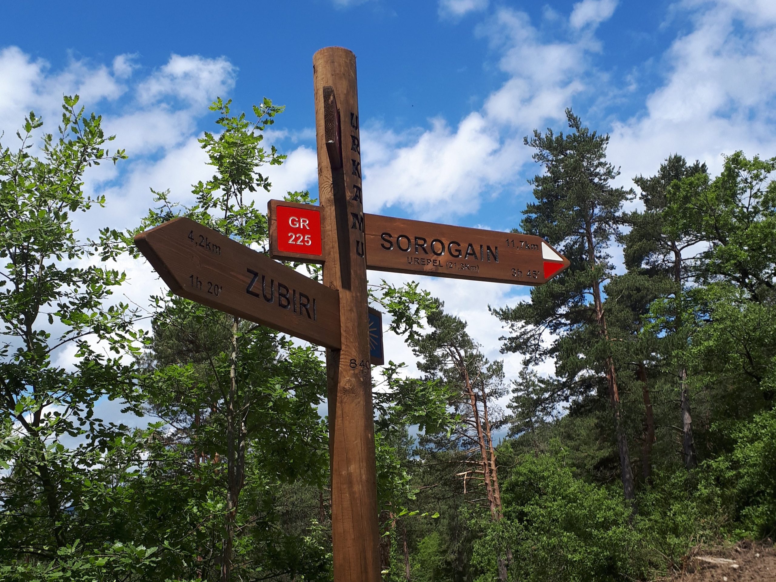 - Estado del camino: la subida inicial entre Larrasoaña y Akerreta / Errea presenta tramos con firme irregular, piedras sueltas y pendientes sostenidas. En días húmedos puede volverse muy exigente. El descenso por el GR-65 hacia Zubiri combina senderos históricamente pisados con zonas rocosas o raíces: precaución en curvas y bajadas pronunciadas. El tramo final hacia Larrasoaña es más rodador y amigable, aunque todavía con algún tramo con cambios de firme.