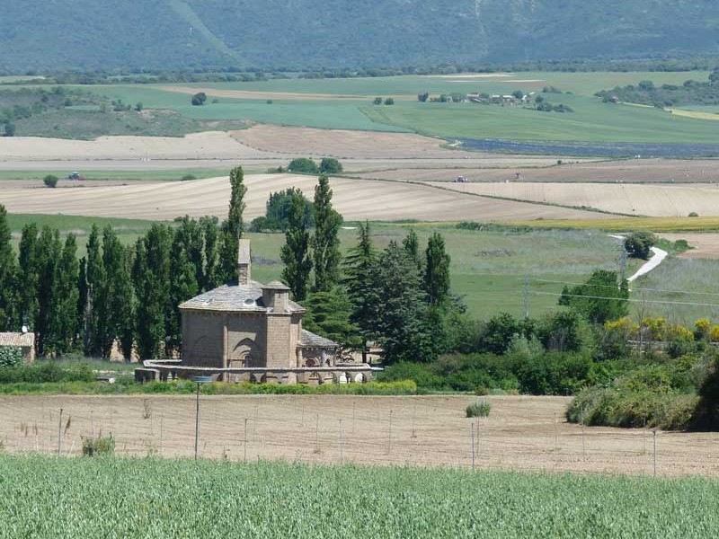 Partiremos de la bella iglesia de Santa María de Eunate para atravesar extensos campos de cereal, adentrarnos en las cumbres de la media montaña y recorrer un pequeño tramo del Camino de Santiago. Si el calor aprieta el recorrido puede resultar árido, sin apenas sombras, duro como lo es para los peregrinos, que después de una larga jornada caminando divisan a lo lejos Eunate, y el descanso de sus fatigados cuerpos. En Puente la Reina se juntan el Camino Francés y el Aragonés, pero Eunate es, en cierta medida, la antesala de dicho encuentro.