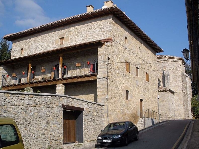 Construcción gótica del siglo XIV con nave única y retablo plateresco de 1538, muestra emblemática del arte religioso navarro.